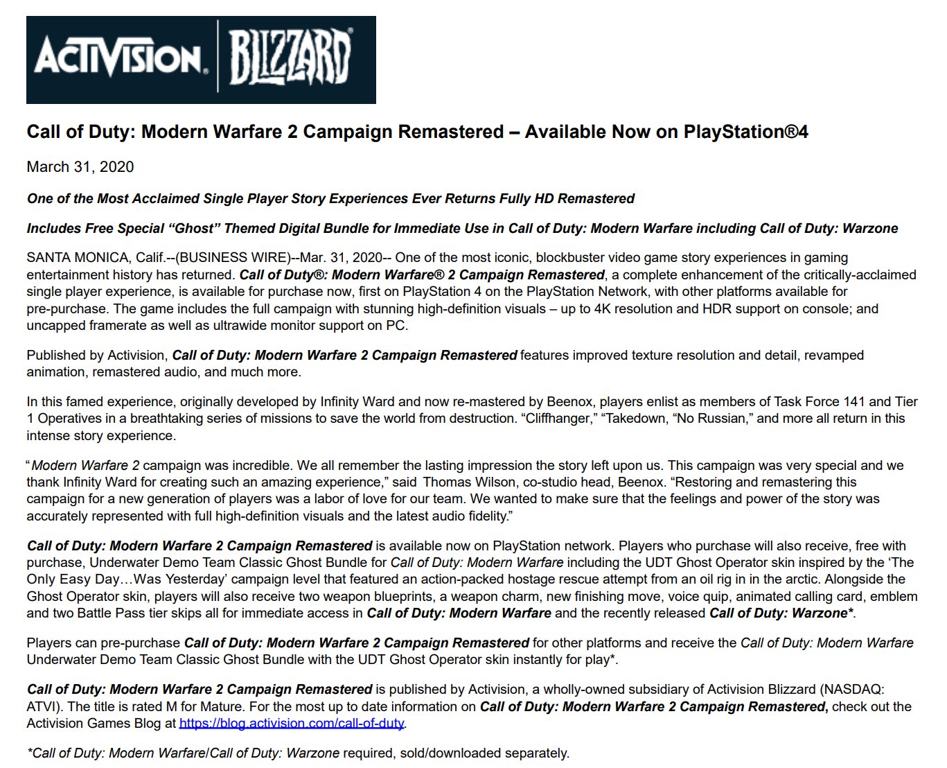 Source : blog.activision.com